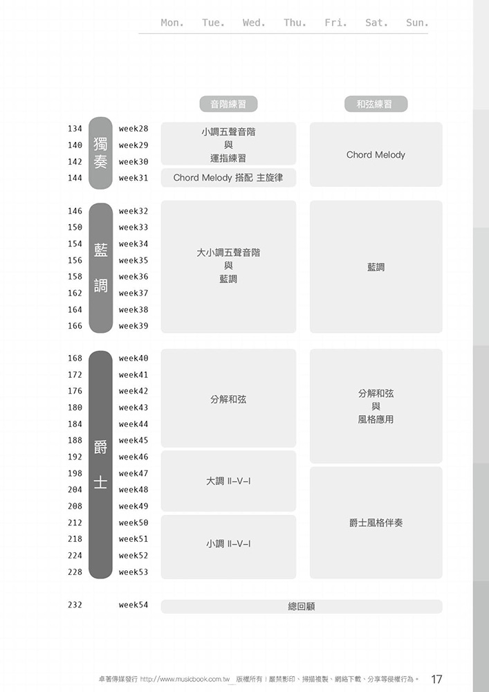 先將和弦、音階分開訓練,再綜合應用至樂風彈奏。